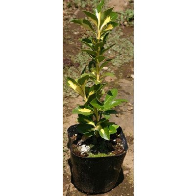 特徴 常緑広葉樹。葉は楕円形で縁にゆるやかなギザギザがあり革のような光沢があります。葉の内側には金色の斑が入っています。夏に緑がかった白色の小花を咲かせ、冬には赤い実を付けます。熟した実は3~4つに裂けて中から赤黄色の種子が現れます。葉だけでなく、この熟して裂けた実も美しいです。耐陰性が強く、潮風にも比較的強く生長が早いので生け垣によく利用されます。 ポットサイズ:3.5号(10.5cm) 高さ:20cm内外 10本セット