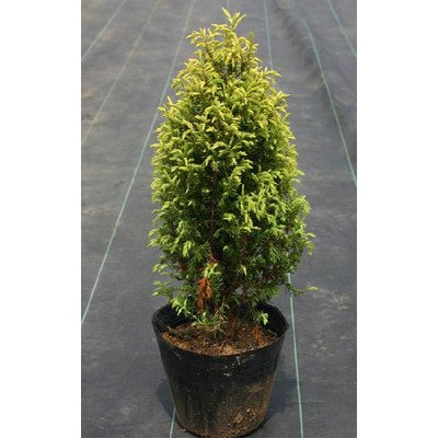 特徴 コニファーの中でも比較的細身で黄色系のコニファーです。全体的には黄緑色っぽい黄色となりますが、春の新芽時期は、レモン色に光ります。 ポットサイズ:5号(15cm) 高さ:40cm内外