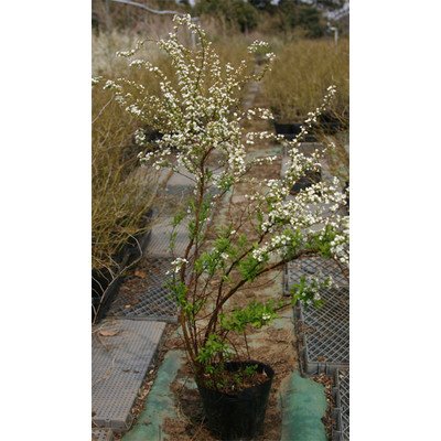 特徴 株元から多数の枝を出し葉が柳の葉に似て細長く、枝いっぱいに白い花を雪が積もったように咲きます。 ポットサイズ:5号(15cm) 高さ:70cm内外