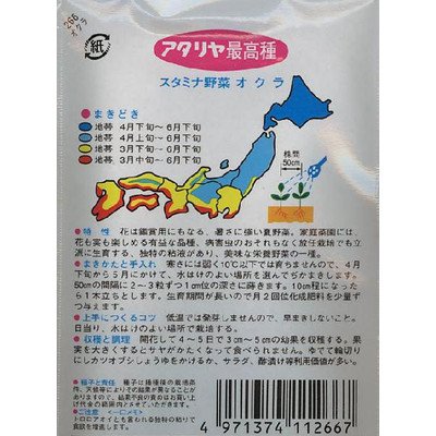 特徴 暑さにも強い夏野菜で、花も実も楽しめるため家庭菜園にも適しています。病害虫も比較的少なく、放任しておいても育ちます。 まきどき 3月中旬~6月下旬