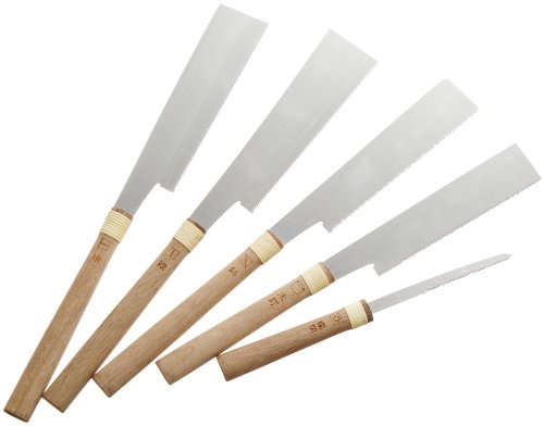 - セット内容:横挽き(挽切鋸)170mm・縦挽き(ガンガリ鋸)170mm・斜め挽き(押挽鋸)170mm・木釘挽き(ダボ切鋸)150mm・欄間挽き70mm 各1丁 三木金物商工協同組合連合会認定書付