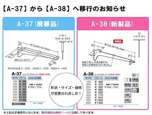 ロイヤル 木棚受 A-32/33用 中間受 A-38 クローム 【350mm】 1本売