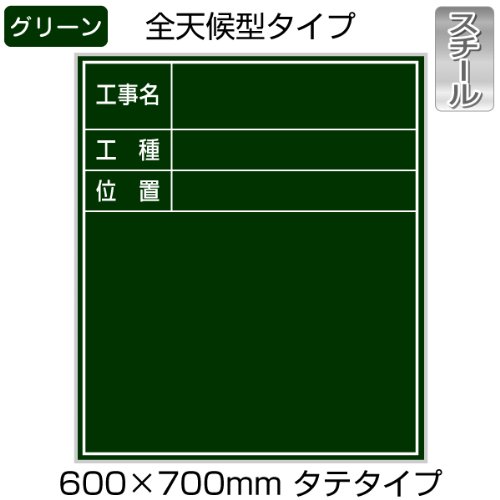 CKM-1 ACE 工事用黒板(SE標準スチールタイプ)グリーン 600×700mm タテタイプ