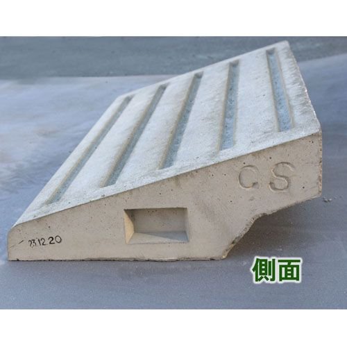 ●コンクリート製のスロープです。車や自転車、歩行時の段差解消に。最も高い部分で約12cmの高さです。背面の底部には道路脇などの排水を妨げないように空間が確保されています。丸みのあるプラスチック製に比べ、スロープの角度がフラットなため静かでスムーズな乗り上がりです。コンクリートやアスファルトの地面に接着する場合は別売りのコンクリート・レンガ接着剤(ナルシルバー)などをご利用頂くと便利です。【注意事項】●車に使用する場合は下地のしっかりした場所でご利用下さい。●不安定な場所に設置して車で乗り上げた場合、破損する場合がございます。●コンクリート製のため、若干の割れや欠けがございますのでご了承下さい。【返品について】こちらの商品は重量物のため不良品以外の返品はお断りしております。