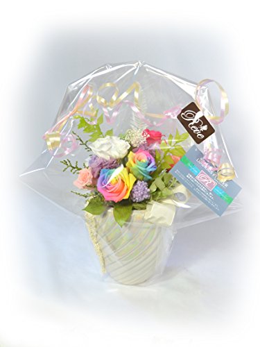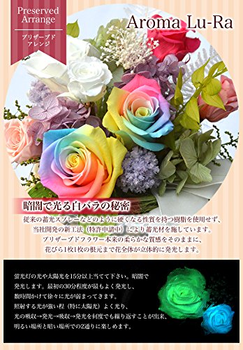 <母の日限定ギフト>ほんのり香る100%プリザーブドアレンジ [アロマLu-Ra] レインボーと暗闇で光るバラ入り!<送料無料!> Reve