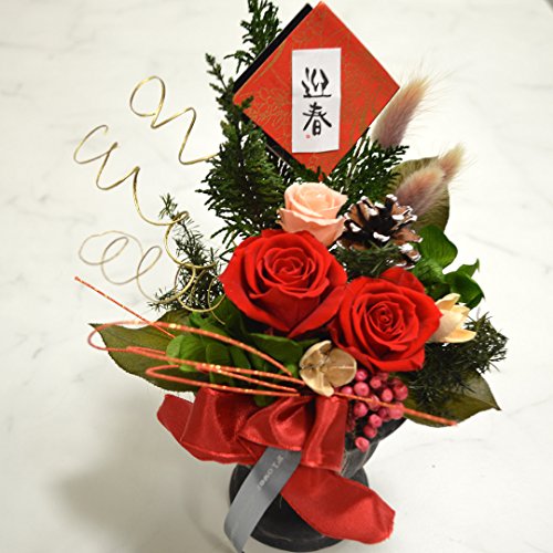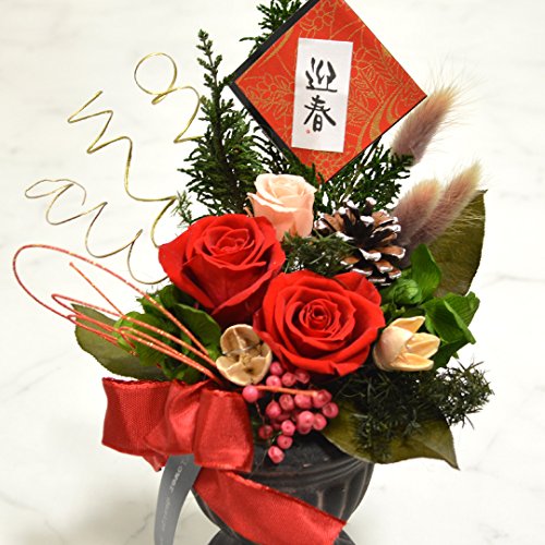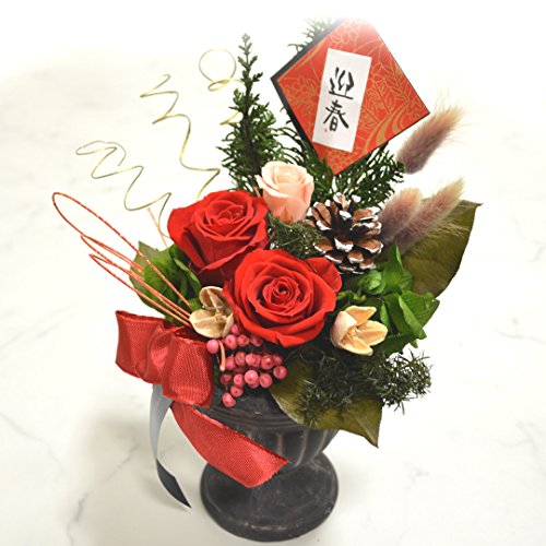 - ・材料:〔プリザーブドフラワー〕バラ、アジサイ、ヒムロ杉、ヒバ、ペッパーベリー、レモンリーフ、ラグラス 〔その他〕松ぼっくり、パクリ、リボン、水引、お正月ピック ※花器、副素材は画像と異なる場合がございます。ご了承下さいませ。