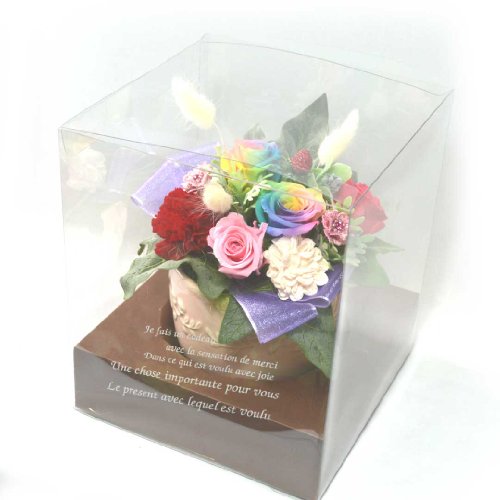 - ・枯れない花、プリザーブドフラワーのアレンジメント。クリアケース入り。