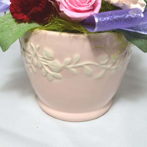 - ・サイズ:幅約18cm、奥行き約18cm、高さ約20cm。 クリアケースサイズ:縦、横18㎝、高さ21㎝ 使用花材:〔プリザーブドフラワー〕レインボーローズ、バラ、カーネーション ラグラス 〔その他〕フェイクカーネーション、リーフ、マカロンピック、ラズベリーピック、リボン他 ※花器の色は淡いピンクから、現在ホワイトに変更となっております。ご了承くださいませ。