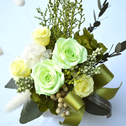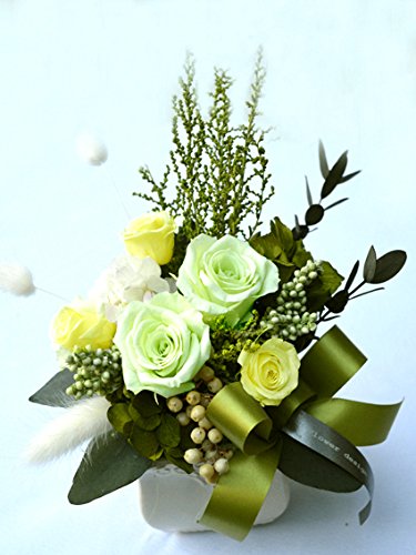 ほんのり香る100%プリザーブドフラワーアレンジ [アロマピュア グリーン×イエロー]