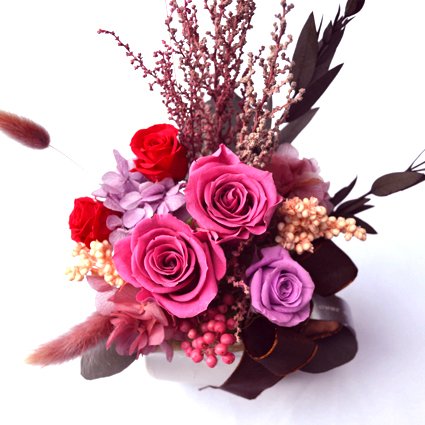 - ・100%プリザーブドフラワーの花材。造花は使用していません。