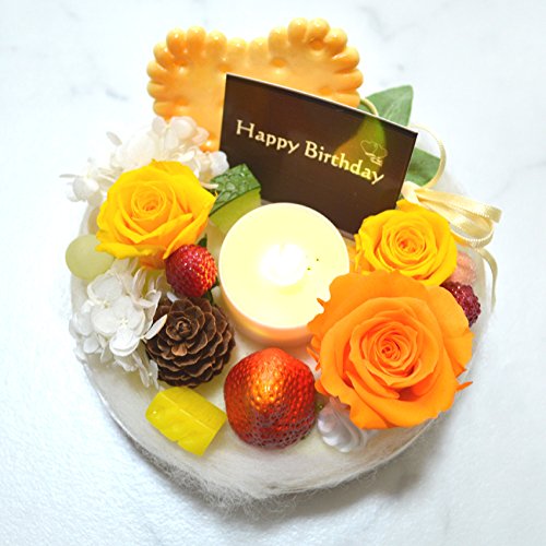 【誕生日ギフト】プリザーブドフラワー 色が変わるLEDキャンドル付 フラワーケーキ[フルーツ]