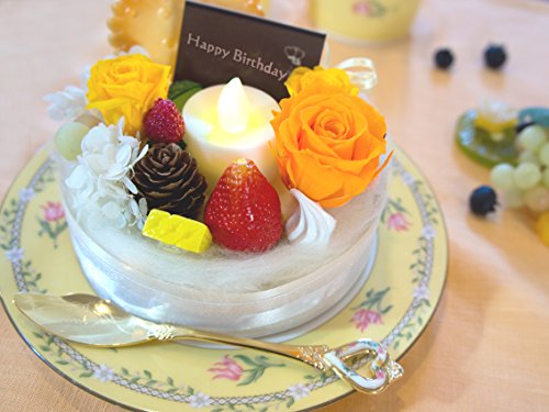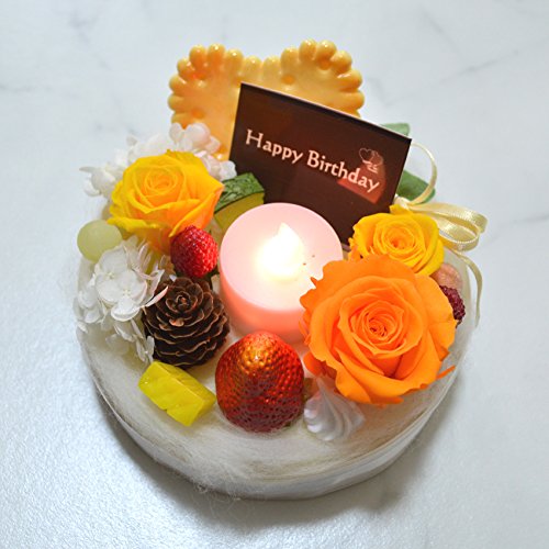 - ・枯れないプリザーブドフラワーの誕生日ケーキ。7色に変化するLEDキャンドル付き
