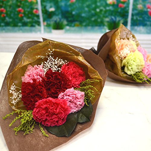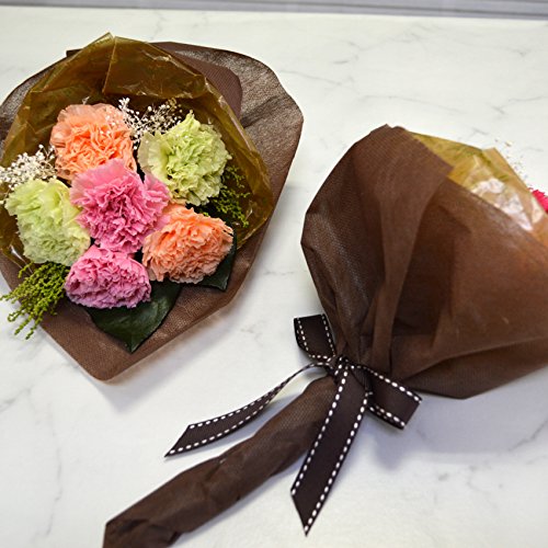 - ・花材:〔プリザーブドフラワー〕カーネーション、レモンリーフ、ストーベ、カスミソウ ・サイズ:ラッピングを含む 最大幅約15cm、長さ約28m