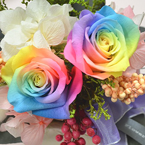 - ・レインボーローズを入れたNEWデザイン。※レインボーローズはご注文時期により、色の濃さやグラデーションの度合いが画像と異なる場合がございます。予めご了承くださいませ。