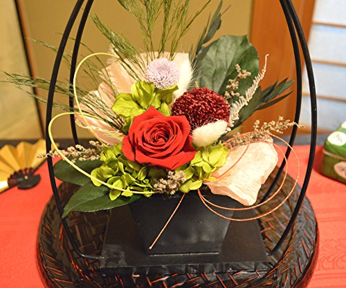 <ギフト>ほんのり 香る !和風 プリザーブドフラワー アレンジ [香凛 レッド]