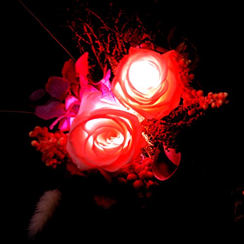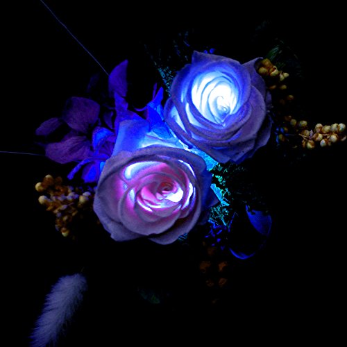 - ・LEDで7色に変化する光るバラ。枯れない花、ほんのり香る100%プリザーブドフラワーのアレンジ。