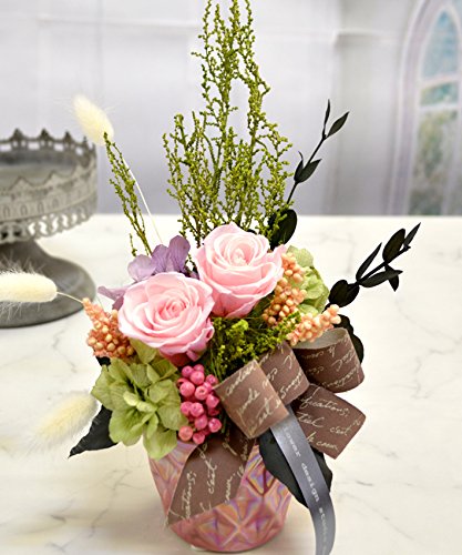 - ・100%プリザーブドフラワーの花材。造花は使用していません。ラッピング、メッセージカード無料。