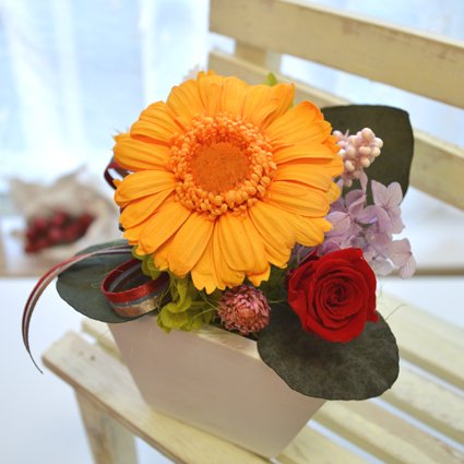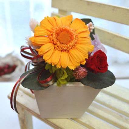 - 100%・プリザーブドフラワーのキュートなガーベラアレンジ。