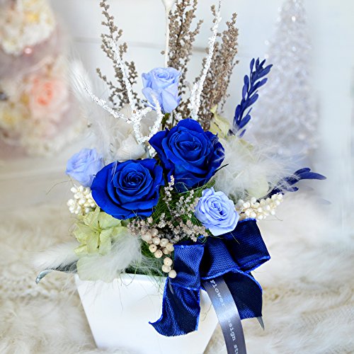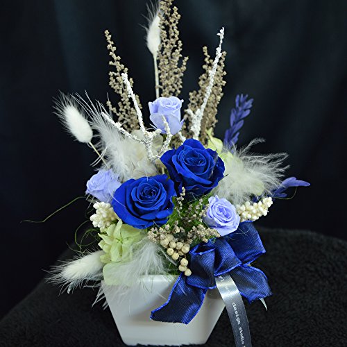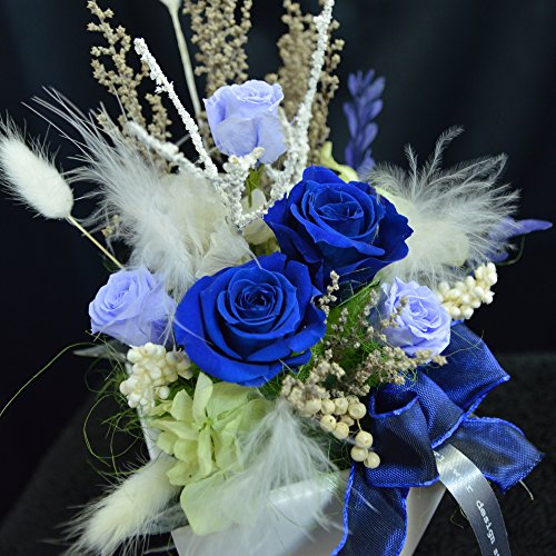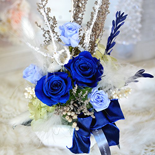 【ギフト】ほんのり香る 100% プリザーブドフラワー ギフト アレンジ [アロマピュア] (winterブルー)
