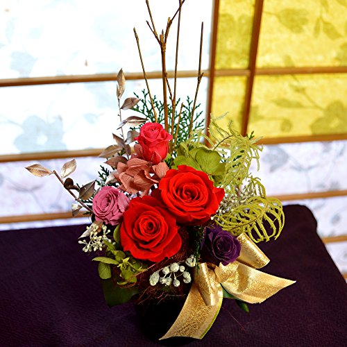 【ギフト】ほんのり香る 100% プリザーブドフラワー ギフト アレンジ [アロマピュア] (和風)