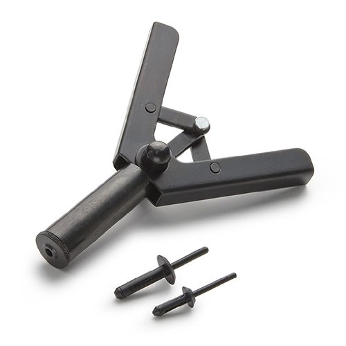 プラススチックハンドリベットセットは、ボディパネルの仮止めや、内装など金属製のリベットが適さない箇所に使用するプラスチックリベットと専用リベッターのセット商品です。