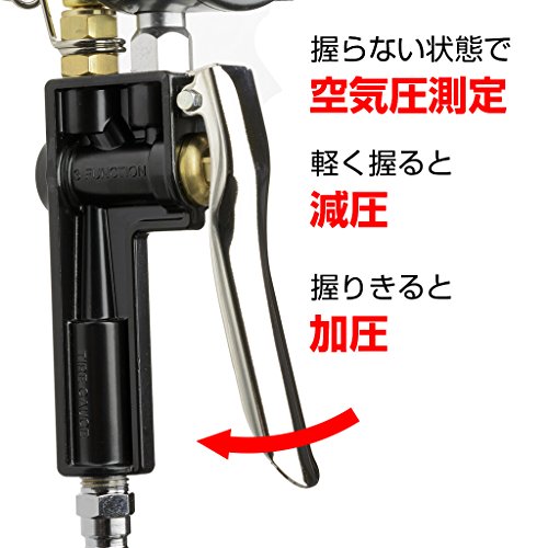 1レバーで空気圧の測定、加圧、減圧操作ができ作業効率が上がります。