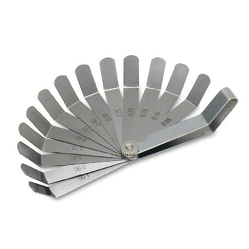 タペット調整、バルブクリアランス、ポイントギャップ、シム調整等あらゆる隙間を計測する先端に角度をつけたシックネスゲージです。