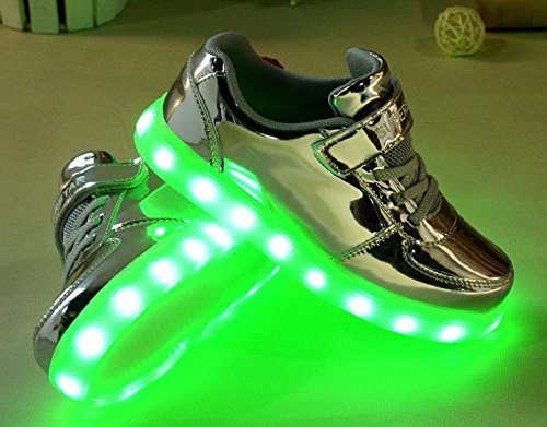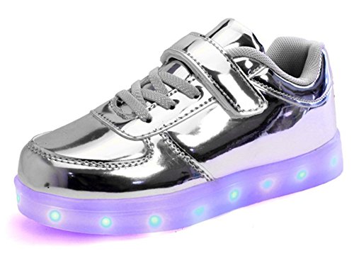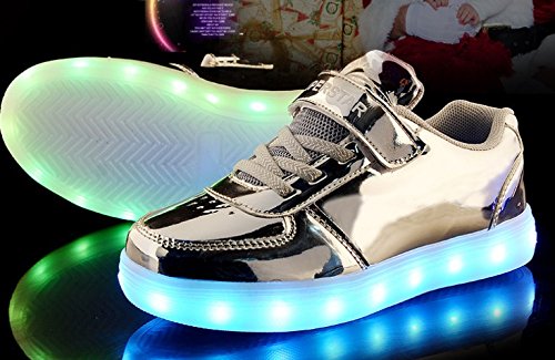 (iWEC)メンズ レディース ユニセックス カジュアルシューズ 子供サイズ LED 光る 夜安全靴 ピカピカ 光沢あり シルバー 35(22.5)