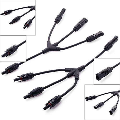 [Signstek]YブランチMC4 パラレル ソーラーパネルケーブル コネクタアダプタ 1M3F+3M1F=1ペアセット 太陽光パネル専用