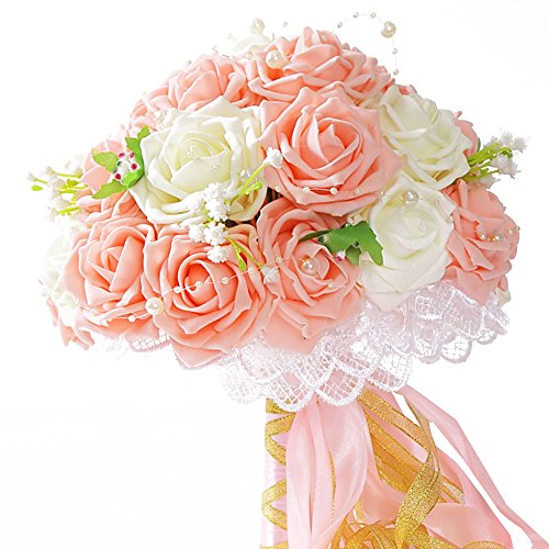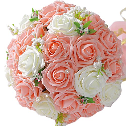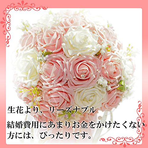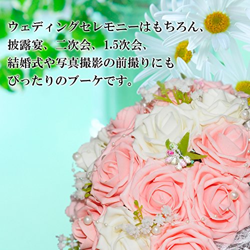 F-grip ウェディング ブーケ アートフラワー バラ プレゼント (ホワイト・ピンク)