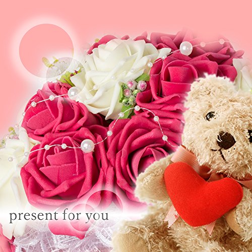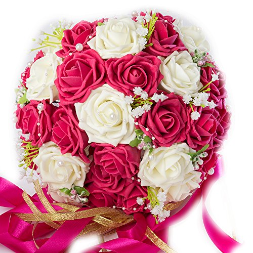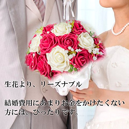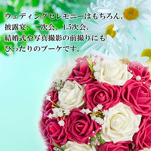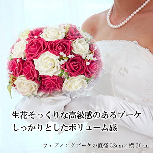 【F-grip】 ウェディング ブーケ アートフラワー バラ プレゼント 母の日 (ホワイト・ショッキングピンク)