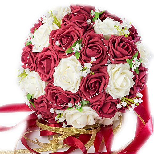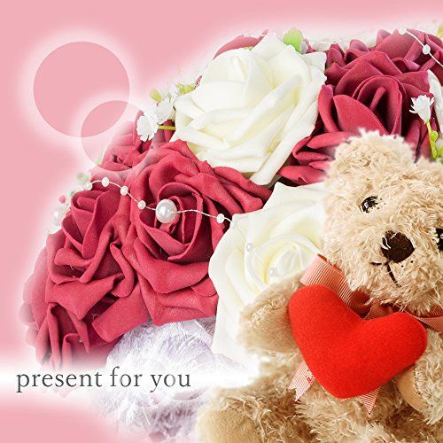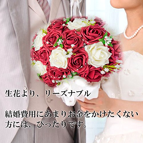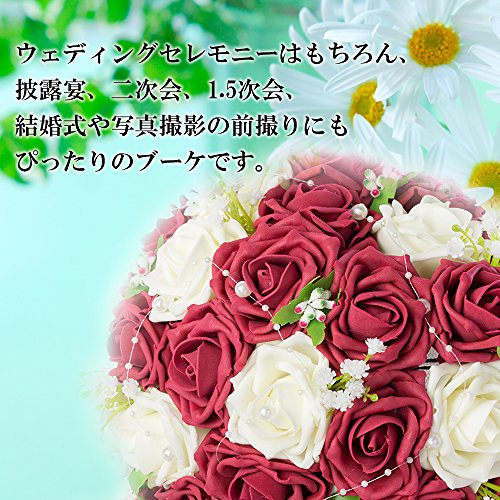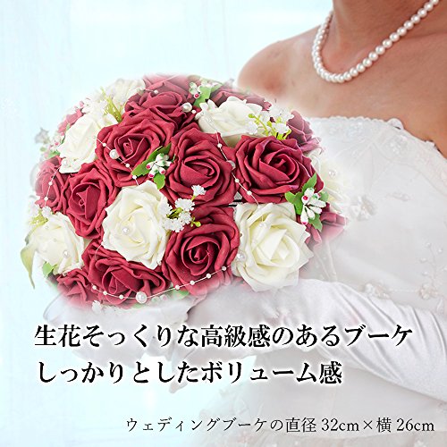 【F-grip】 ウェディング ブーケ アートフラワー バラ プレゼント 母の日 (ホワイト・ローズレッド)
