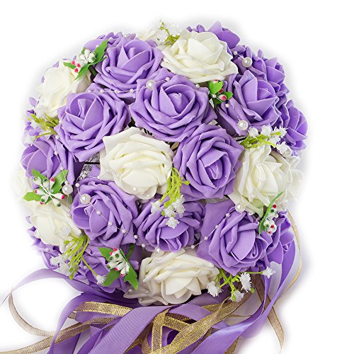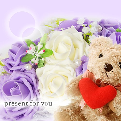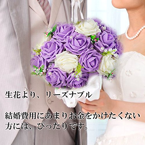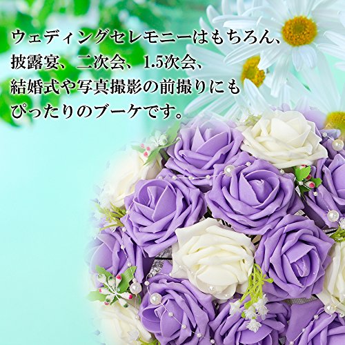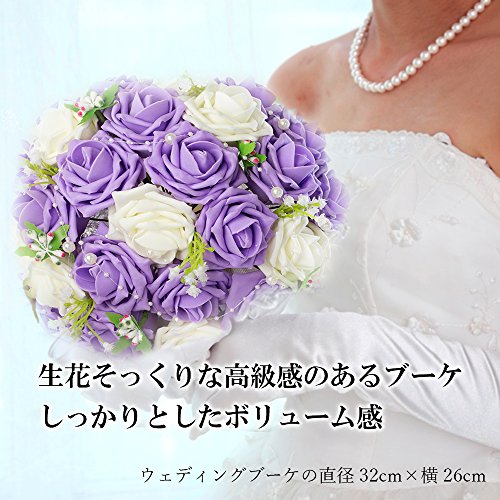 【F-grip】 ウェディング ブーケ アートフラワー バラ プレゼント 母の日 (ホワイト・パープル)