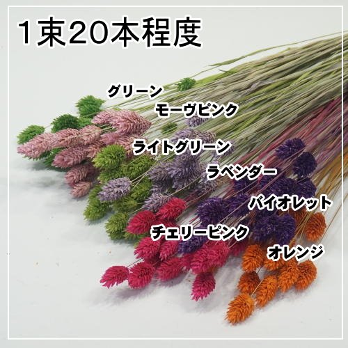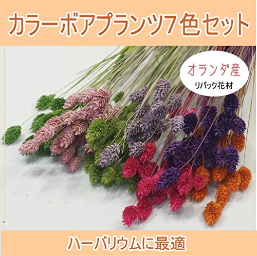 カラーボアプランツ7色セット グリーン・ライトグリーン・モーヴピンク・ラベンダー・チェリーピンク・バイオレット・オレンジの7色です。 1束20本程度×7色(束)となります。
