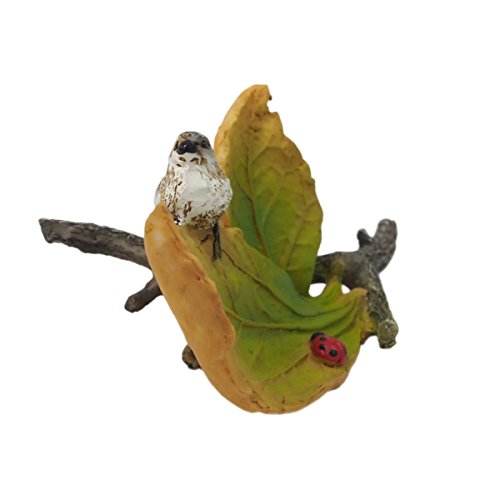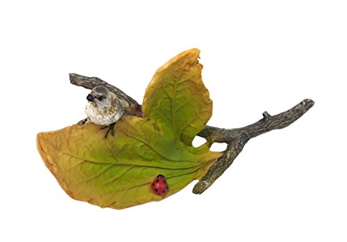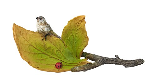 精巧な作りの葉っぱの上に、カワイイ鳥がとまっています。カワイイてんとう虫付き♪