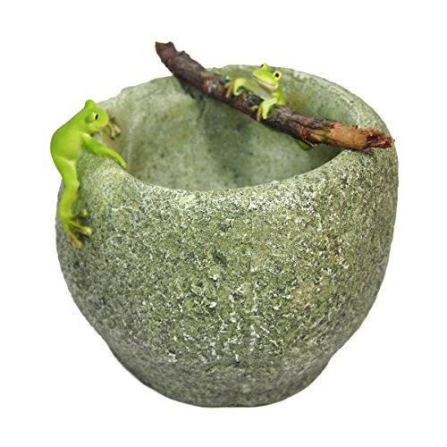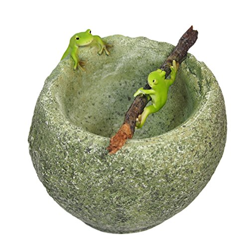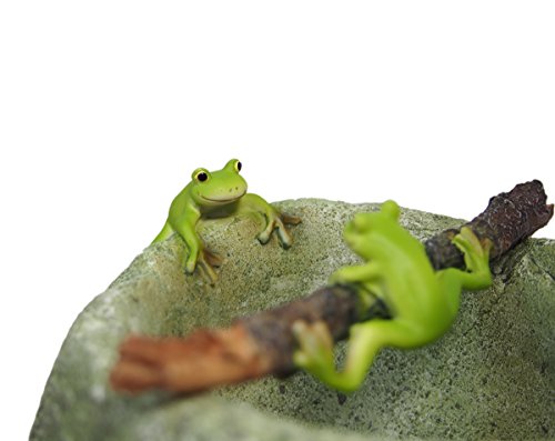 プランタの縁にカエルが一匹。枝に掴まるカエルがもう一匹。枝は取り外し可能です。