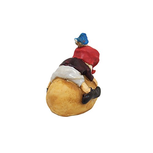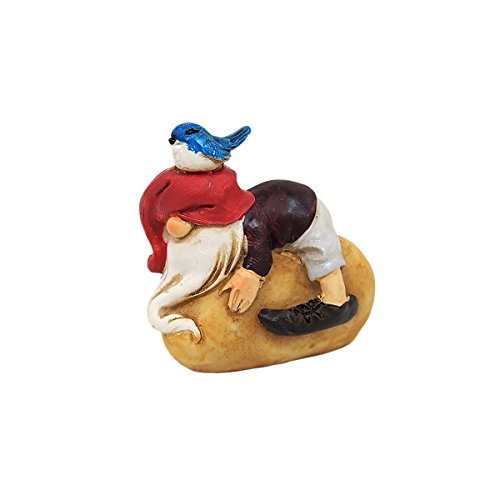 石(ジャガイモ?)の上で寝転んでいるドワーフ。頭の上にはちょこんと青い鳥が乗っています♪