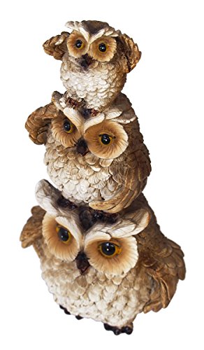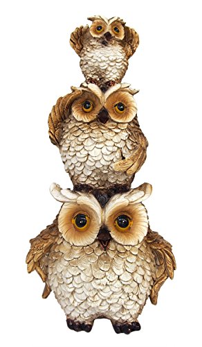 仁王立ちする一番下のフクロウと、見晴らしを楽しむような上のフクロウたちが愛らしいです。