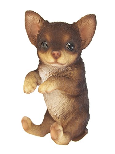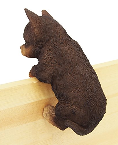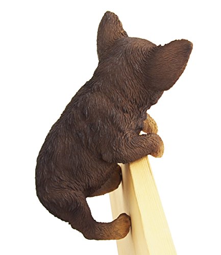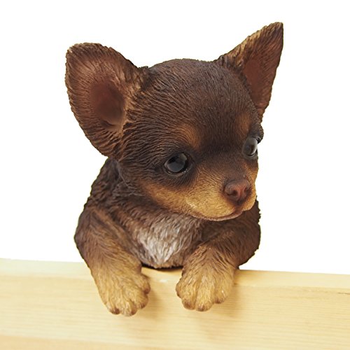 今にも動き出しそうなハンギングタイプのチワワ。濃いブラウンの毛並みです。