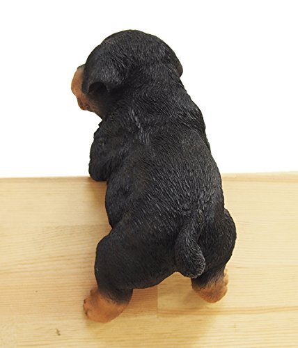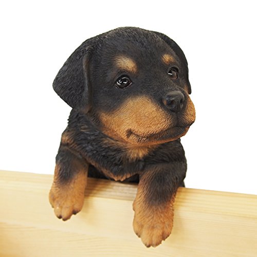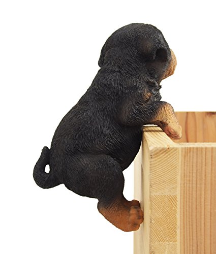 レジンで出来たガーデンオブジェ。モチーフは美しい黒い毛並みを持ったロットワイラの子犬です。