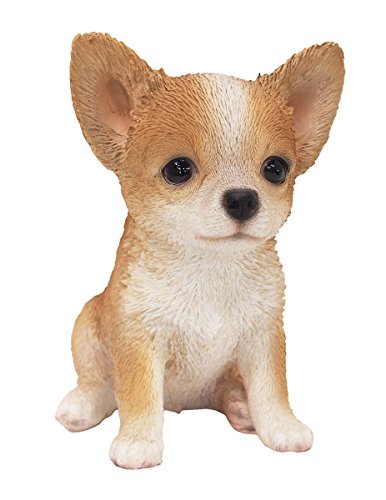 レジンで出来たガーデンオブジェ。モチーフは茶色と白の毛並みを持ったチワワです。