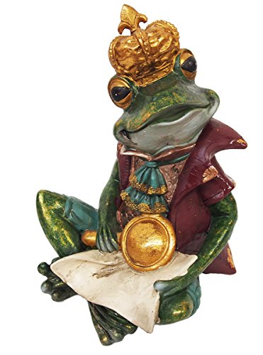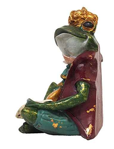 頭に王冠をのせ、虫眼鏡を使って手紙を読んでいます。