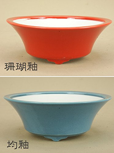 いよじ園 【盆栽鉢】 京焼 彩色ミニ鉢 反型丸鉢(小)(口径:8.5cm) ▼ご選択ください,珊瑚釉
