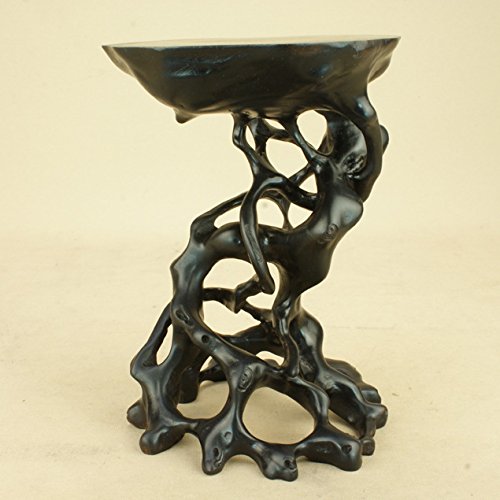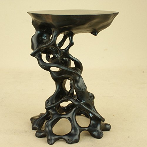 いよじ園 黒檀 天然彫高卓 小品~貴風サイズ [未使用] (盆栽卓 飾卓 花台)