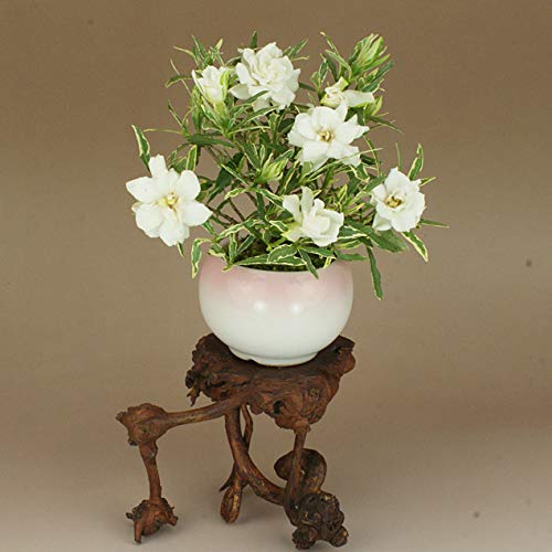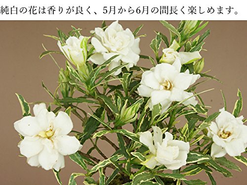 いよじ園 【】 斑入花クチナシ 八重咲 ミニ盆栽 育て方説明書・肥料1年分プレゼント【花物盆栽】