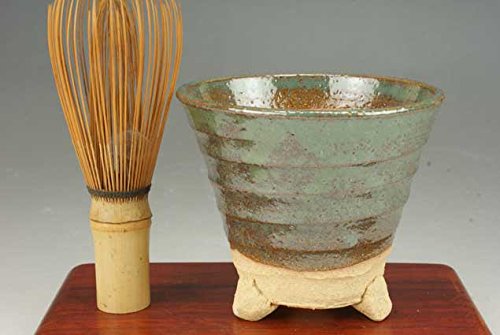 (盆栽鉢)信楽焼/久庵作 三足反高丸鉢(グリーン)(大:3.5号)