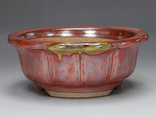 いよじ園 【盆栽鉢】 小石原焼/輪花鉢 【辰砂釉】【左右12cm】【ミニ鉢~小鉢】