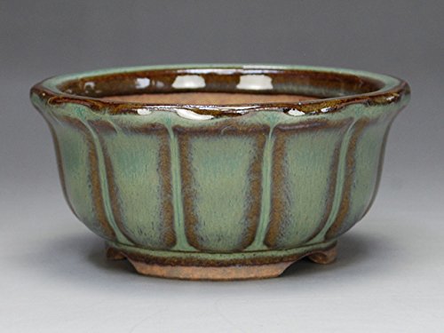 いよじ園 【盆栽鉢】 小石原焼/輪花鉢 【緑釉】【左右9.5cm】【ミニ鉢~小鉢】