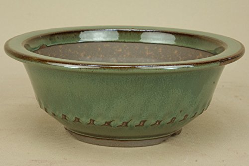 いよじ園 【盆栽鉢】 小石原焼/6寸 胴縄丸鉢 【緑釉】【左右18.5cm】【ミニ鉢~小鉢】