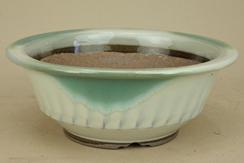 いよじ園 【盆栽鉢】 小石原焼/6寸 胴縄丸鉢 【白釉】【左右18.5cm】【ミニ鉢~小鉢】